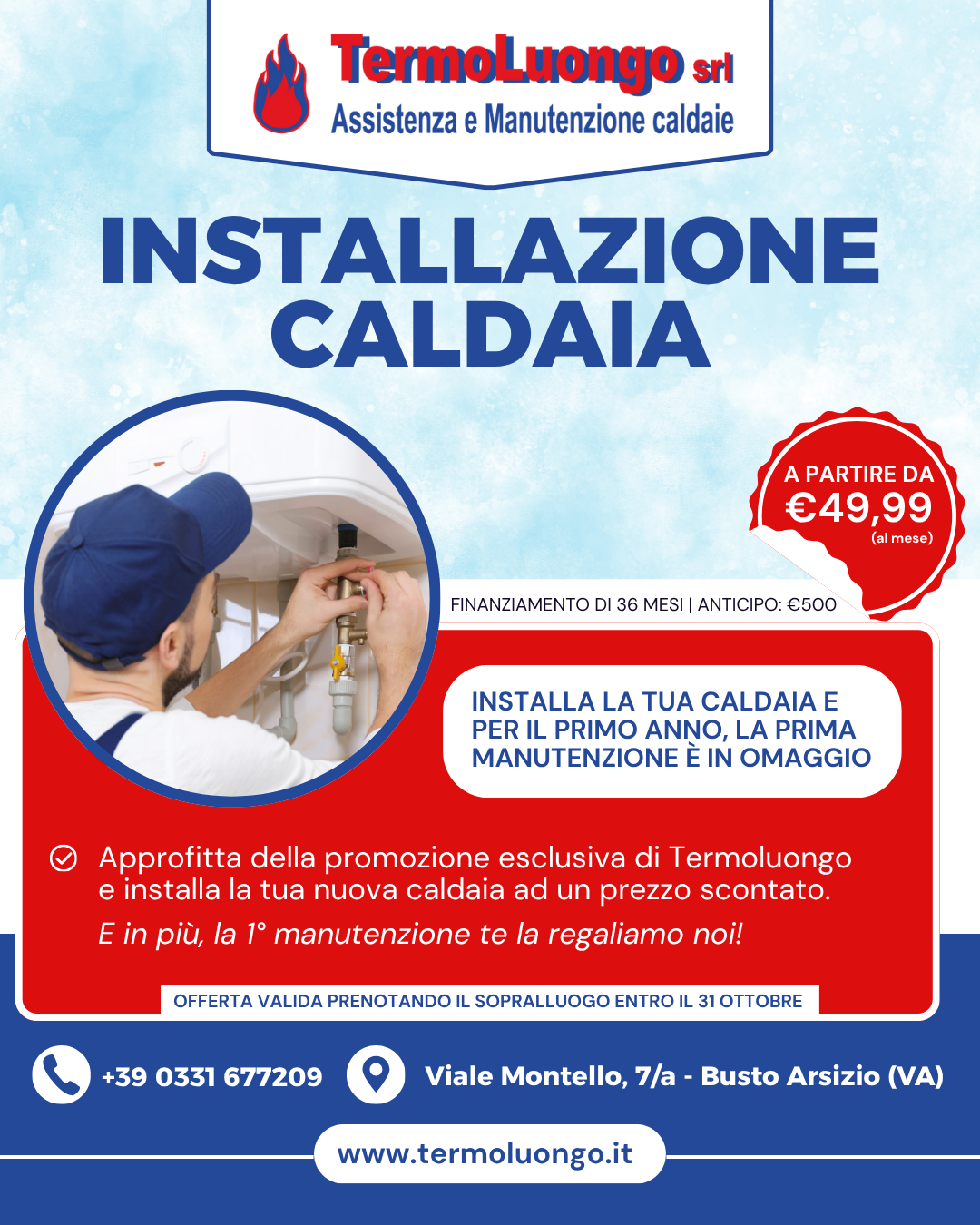 TermoLuongo è un punto di riferimento nel settore degli impianti e delle ristrutturazioni dal 2001, con sede a Busto Arsizio. Siamo specializzati in servizi completi per abitazioni e aziende, garantendo professionalità in impianti termici, elettrici, idraulici, climatizzazione e trattamento acque, ristrutturazioni e rifacimento bagni. Ogni progetto viene concepito per offrire soluzioni concrete e durature, con un occhio di riguardo al risparmio energetico e alle tecnologie più all’avanguardia. Dalla consulenza iniziale all’assistenza post-servizio, garantiamo qualità e trasparenza. TermoLuongo si trova in Viale Montello 7/a a Busto Arsizio (VA). Prestiamo i nostri servizi in tutta la zona di Varese e Milano, Vanzaghello compresa.